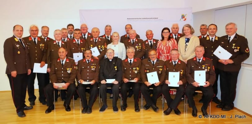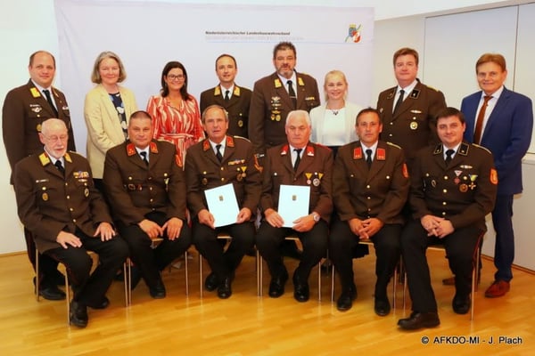 Zusätzlich durften sie gemeinsam mit den anderen Ehrengästen folgende Mitglieder der FF Asparn/Zaya für deren vieljährige verdienstvolle Tätigkeit auf dem Gebiet des Feuerwehr- und Rettungswesens auszeichnen.